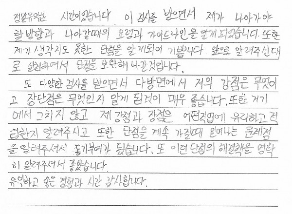 정말 유익한 시간이었습니다. 이 검사를 받으면서 제가 나아가야
